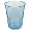 Copo de Plástico hexagonal fabricado em Poliestireno Cristal (PS) turquesa de Ø7,8x9,2cm e 250ml de capacidade.